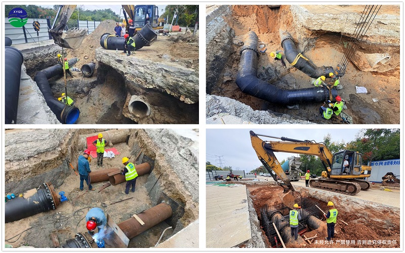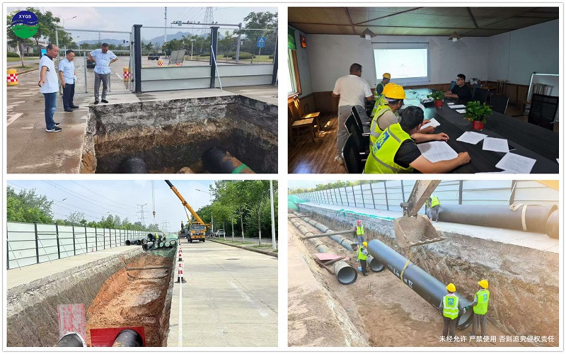 走進陜煤再生水管道工程建設現場,耳邊不時傳來工程機械的轟鳴聲,一個個快速推進的里程碑節點將項目建設的“熱度”拉滿。8月1日,破水穩層,分段施工;8月4日,開挖土方(1+017-0+900)樁號;8月13日機械開挖土方(0+900-0+790)樁號;8月17日0+900-0+790鋪砂墊層并埋管;8月19日0+900-0+790分層回填沙腋角;8月24日 0+790安裝排氣井三通;8月27日0+790-0+756夜間過路;8月30日0+790-0+756澆筑過路彎頭支墩,排氣井墊層。一道道工序有條不紊,一根根DN800管道安裝到位,管線不斷向前延伸。盛潤公司項目部充分發揚團隊精神、契約精神,加強與各單位的合作溝通,全體參建人員發揚齊心協力的團隊精神,鉚足干勁,沒有絲毫猶豫,迎難而上。缺少再生水管道施工經歷,項目部就不斷學習摸索,無數個夜晚,大家圍坐在一起,不斷精細施工工藝流程,反復優化和論證施工方案和細節;夏季白天高溫,經常在夜間施工,項目部便提前對吊裝作業時的每道工序進行反復演練和糾偏;基礎地基復雜不穩定,項目部在基礎開挖、鋪設墊層和回填作業時嚴把質量關;混凝土支墩澆筑工序一旦開始就必須保持連貫性,項目管理人員在泥濘的現場通宵達旦地值守,既要保質保量,又要嚴守安全紅線,確保不出任何差池,從制度、流程、管理上進行全面改進,項目品牌形象持續提升。
